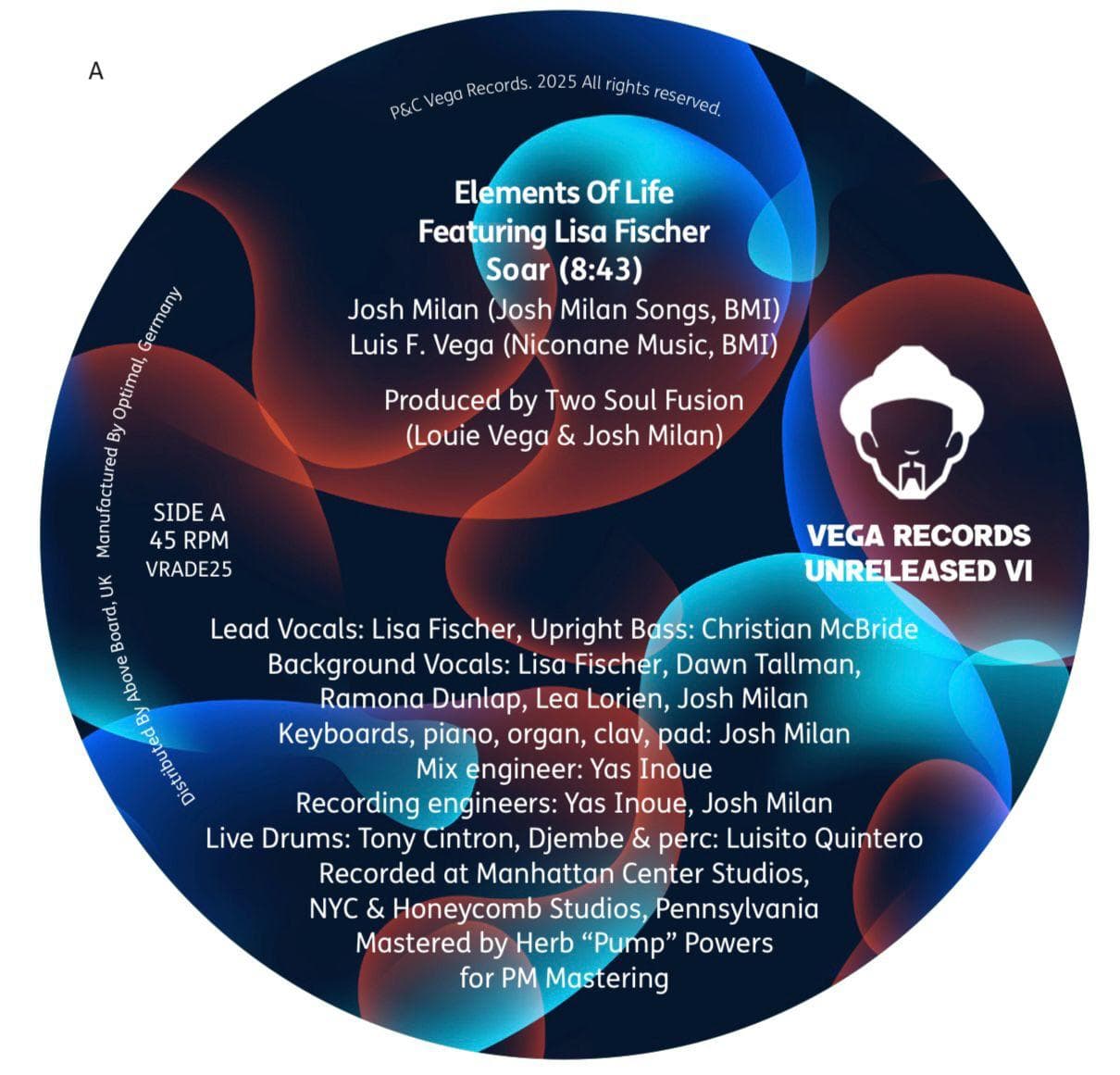 Vega Records is proud to present the Vega Records 5 Pack Unreleased VI, the sixth edition of a 5 piece vinyl filled with tracks that haven’t been released or have upcoming releases in the next few months. The 5 pack Unreleased VI introduces 4 new songs from the upcoming 2026 Elements Of Life Album with a brilliant song entitled “Soar” by Lisa Fischer, written and produced by Two Soul Fusion Josh Milan & Louie Vega as well on vinyl the garage disco smash “Bad For Me” originally sung by jazz legend Dee Dee Bridgewater back in the 70’s with lead vocals by Dawn Tallman and music performed by the Elements Of Life band. A tribute to the talented Gary Bartz with a cover of John Coltrane’s genius “Giant Steps” bringing the jazz gem to the dance floors. And lastly from Elements Of Life, their rendition of the Deodato Loft classic “Whistle Bump” featuring legendary David Bowie guitarist Carlos Alomar! Josh Milan, creator of the group Honeysweet introduces three tracks from his forthcoming Honeysweet III on Vega Records. We foresee a favorite with “What Kind Of Man” bringing a Brazilian jazz feel which was made for the dancers. The remaining two Honeysweet tracks “New Life” and “Because Of You” are truly emotional pieces of music that hit your core. New projects and aliases on the horizon with Funky Cadets featuring Brooklyn’s own Willy Soul on spoken word duties, it’s deep house at its best and the NY iconic artist Keith Thompson who sang on the Vaughn Mason classic “Break For Love” who delivers a powerful message on the well written lyrics of “Take It”. Lastly, never released on vinyl the gospel club smash “Father In Heaven (Right Now)” by multi Grammy winner and gospel royalty Bebe Winans with a Two Soul Fusion produced Synth solo / Vocal Dub. It’s a blazing wall of sound on the 5 pack unreleased with artists and musicians Lisa Fischer, Josh Milan, Keith Thompson, Honeysweet, Dawn Tallman, Elements Of Life, Willy Soul, Carlos Alomar, Ivan Renta, Luisito Quintero, Axel Tosca, Sherrod Barnes, Lea Lorien, Ramona Dunlap, Louie Vega and Bebe Winans!!! Get your vinyl soon, it’s limited edition!